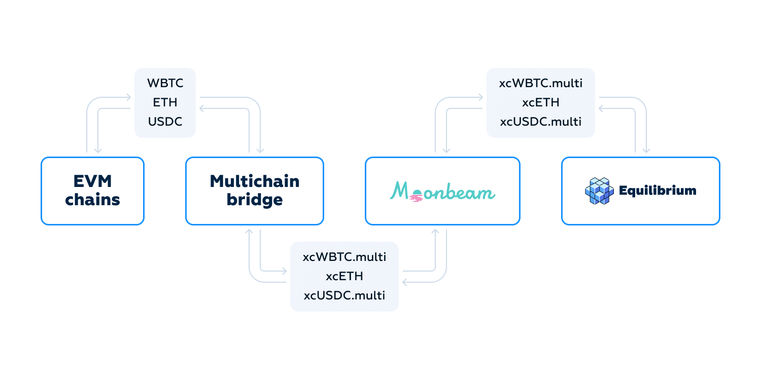 The Equilibrium team developed a proxy contract that implements AnycallProxyBase interface and allows token transfer from Moonbeam to another parachain in the Polkadot ecosystem. This solution may be used by any team which wants to use a Multichain bridge in their parachain.
